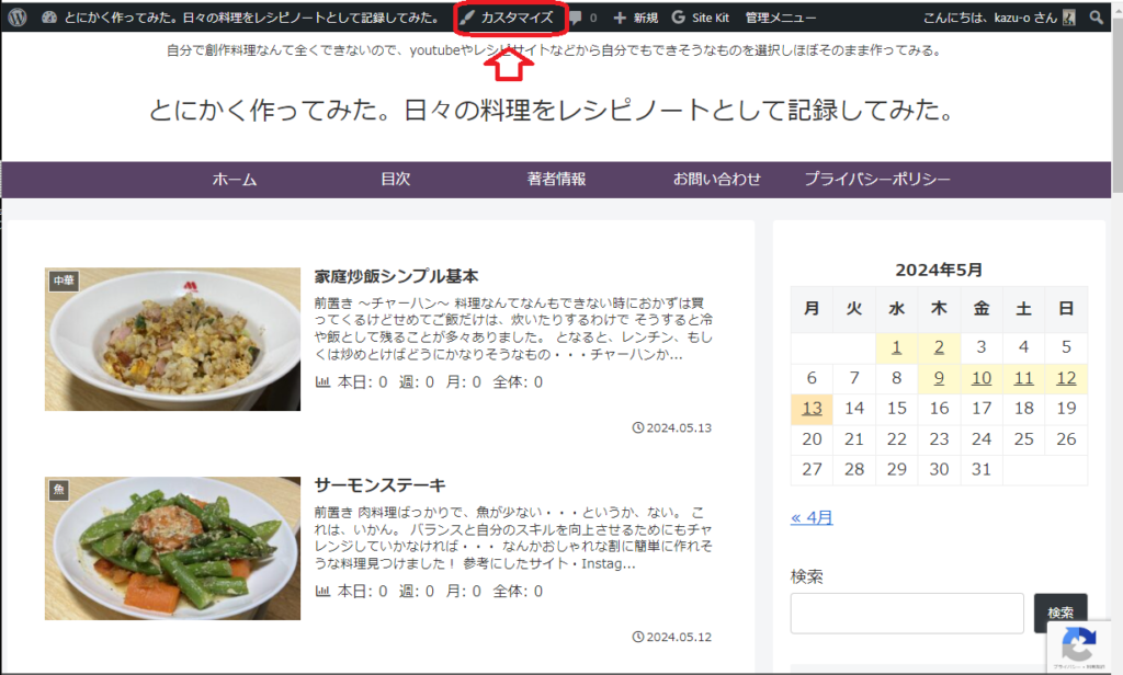 • サイトのタイトル➡ダッシュボードの設定>一般設定からでも変更可。
