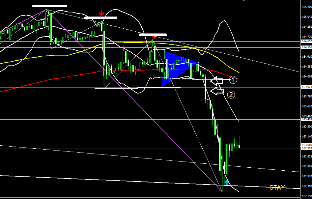 日レベルで、ダブルトップになるのでそのネックライン162.6付近。
